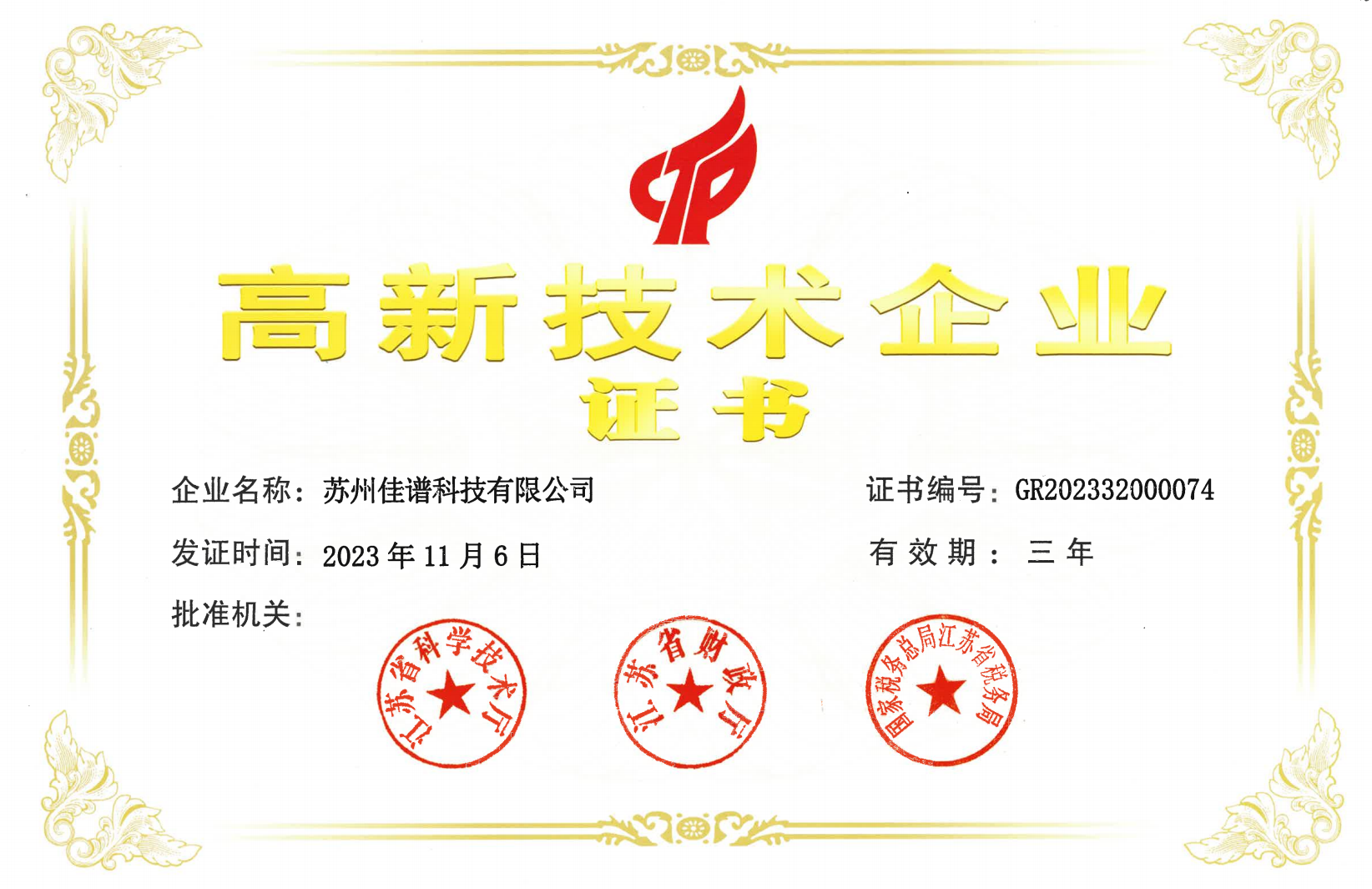 2023年獲江蘇省高新技術(shù)企業(yè)證書
