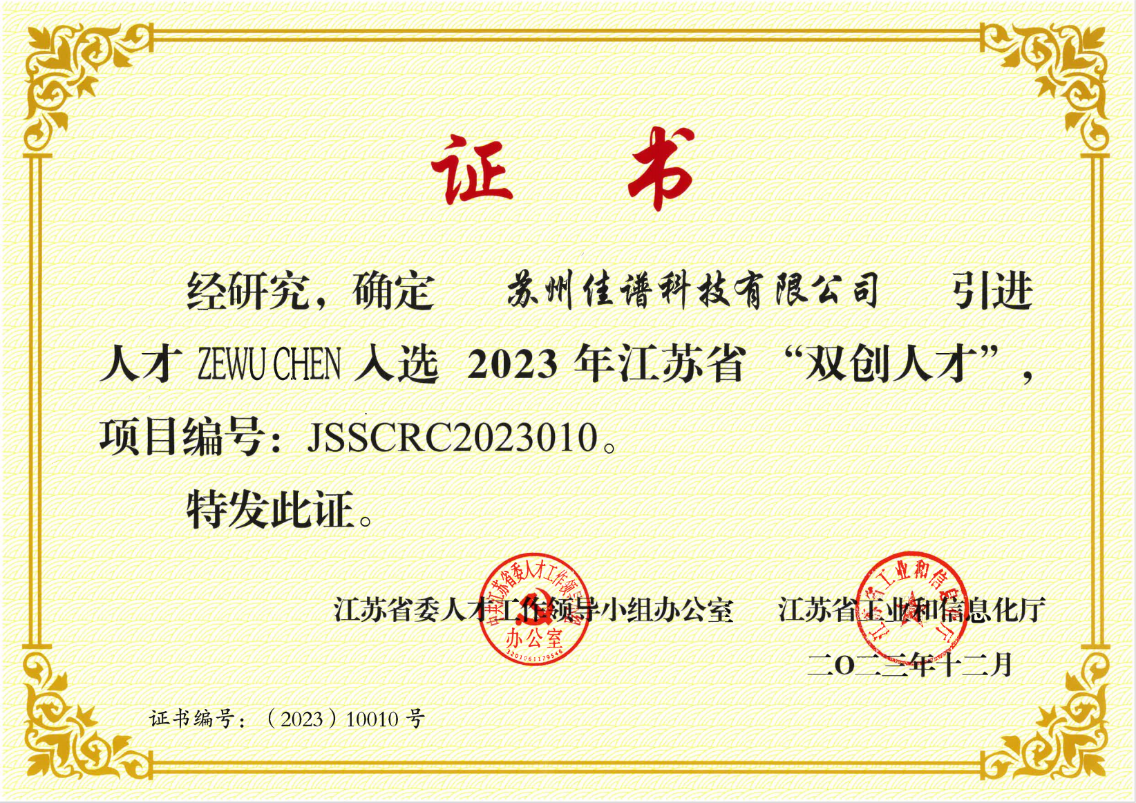 2023年12月榮獲江蘇省雙創(chuàng)人才_陳澤武