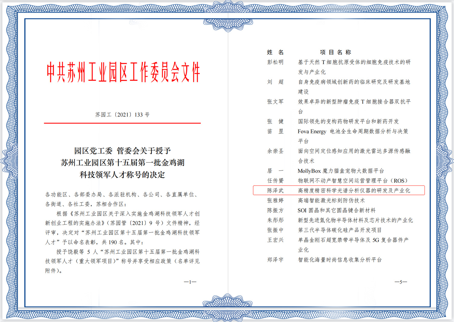 2021年獲得蘇州工業(yè)園區(qū)第十五屆第一批金雞湖科技領(lǐng)軍人才獎_陳澤武