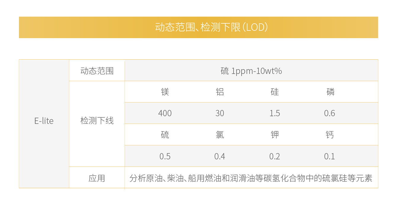 E-lite 系列分析儀可在廣泛的測量范圍進(jìn)行高精度硫含量分析。E-lite 除了能夠進(jìn)行硫分析之外,還可以快速檢測從鎂到鈣元 素,尤其適用于ppm 級別的鈣、鉀、氯和磷等主要元素。
