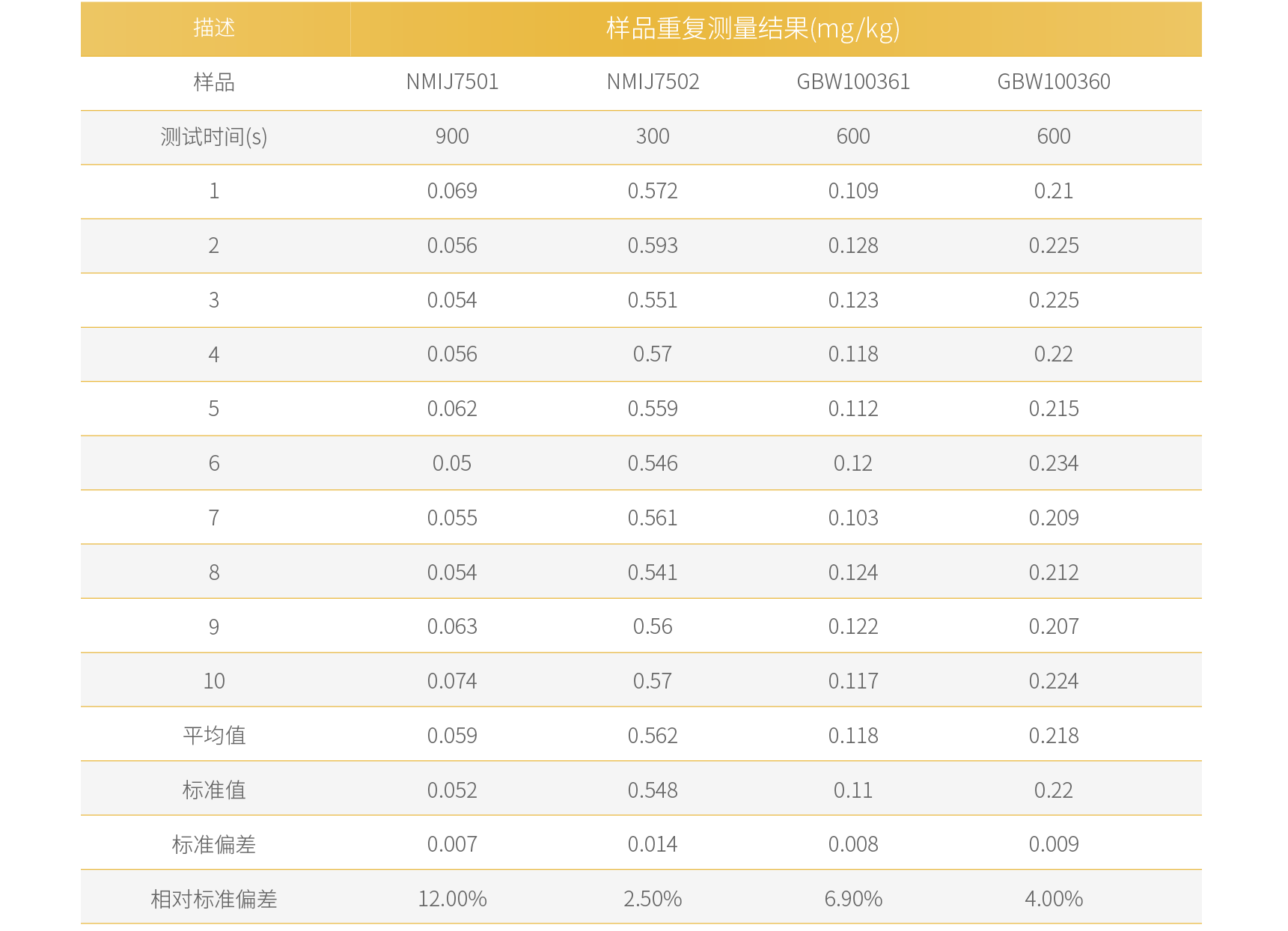 準(zhǔn)確度高,跟實(shí)驗(yàn)室結(jié)果一致;稻谷中Cd精準(zhǔn)定量至0.1mg/kg,重量輕,體積小,方便攜帶,方便帶出野外進(jìn)行臨田抽查。
